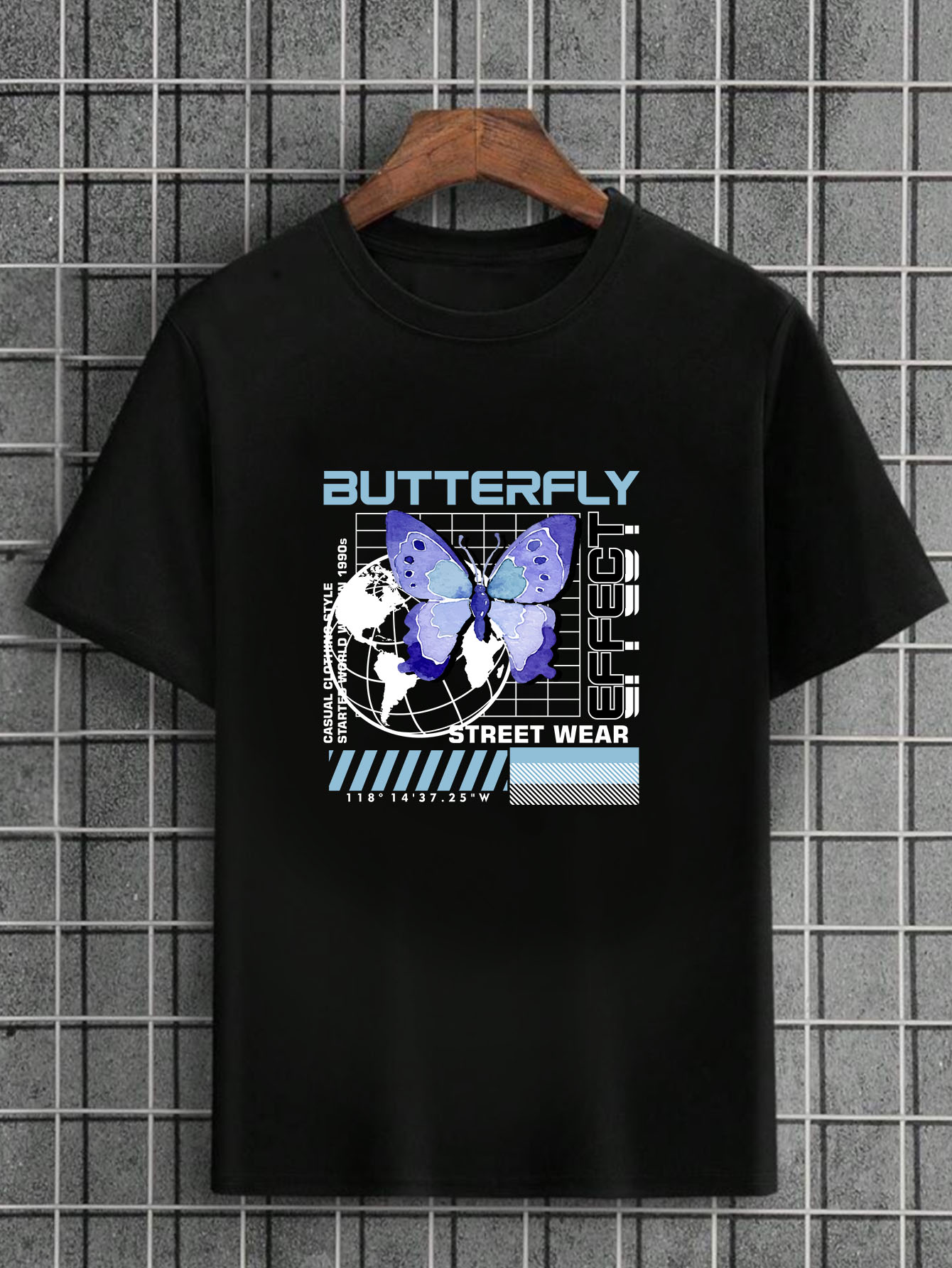 Camiseta Masculina Preta 100% Algodão Butterflies Effect Blue