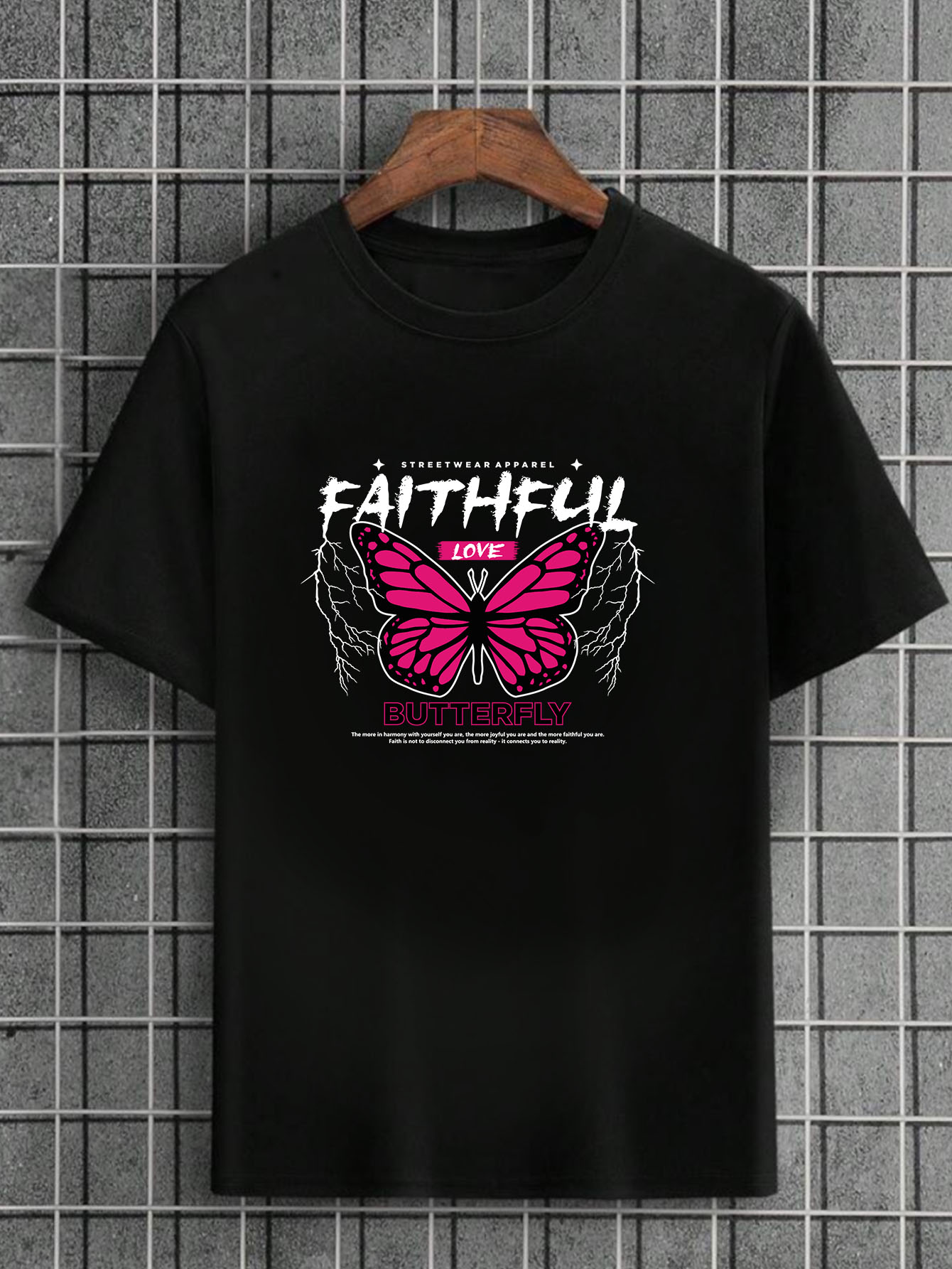 Camiseta Masculina Preta 100% Algodão Butterflies Faithful