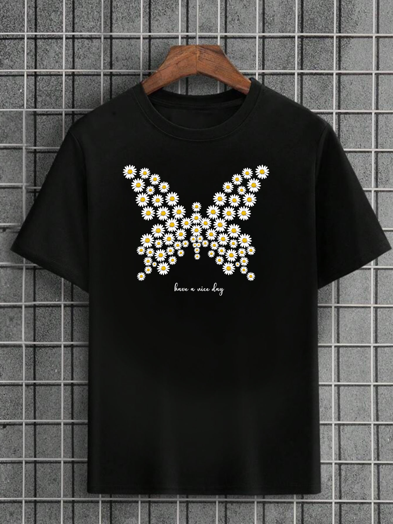 Camiseta Masculina Preta 100% Algodão Butterflies Flowers