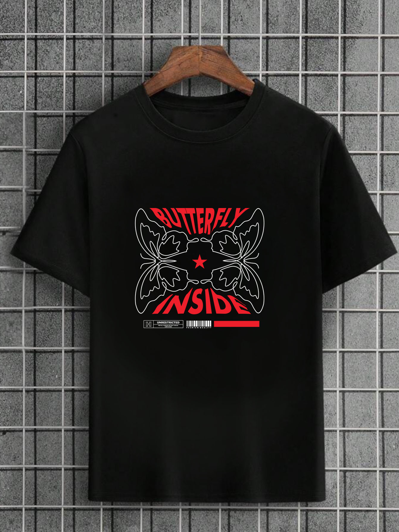 Camiseta Masculina Preta 100% Algodão Butterflies Inside