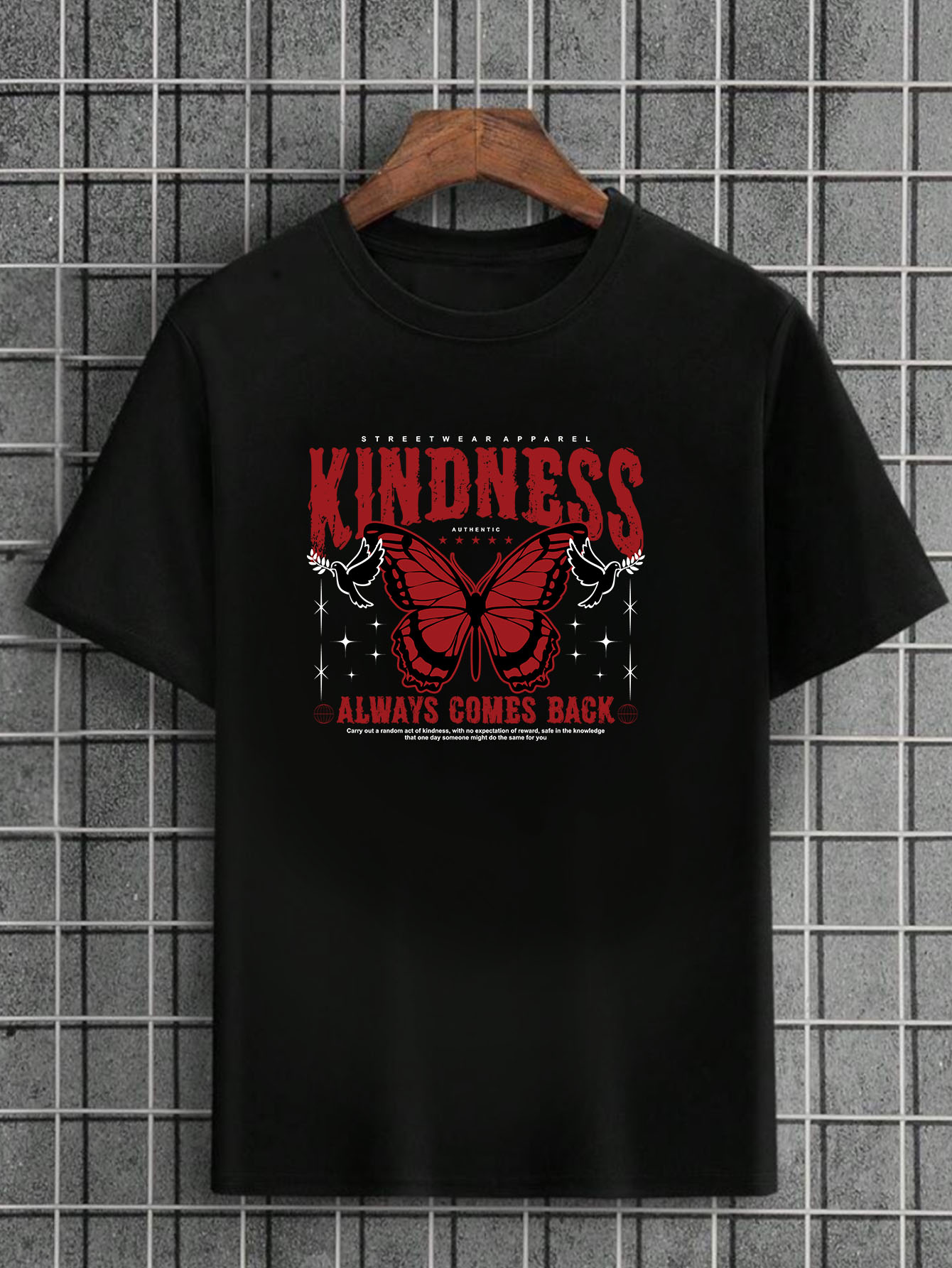 Camiseta Masculina Preta 100% Algodão Butterflies Kindness