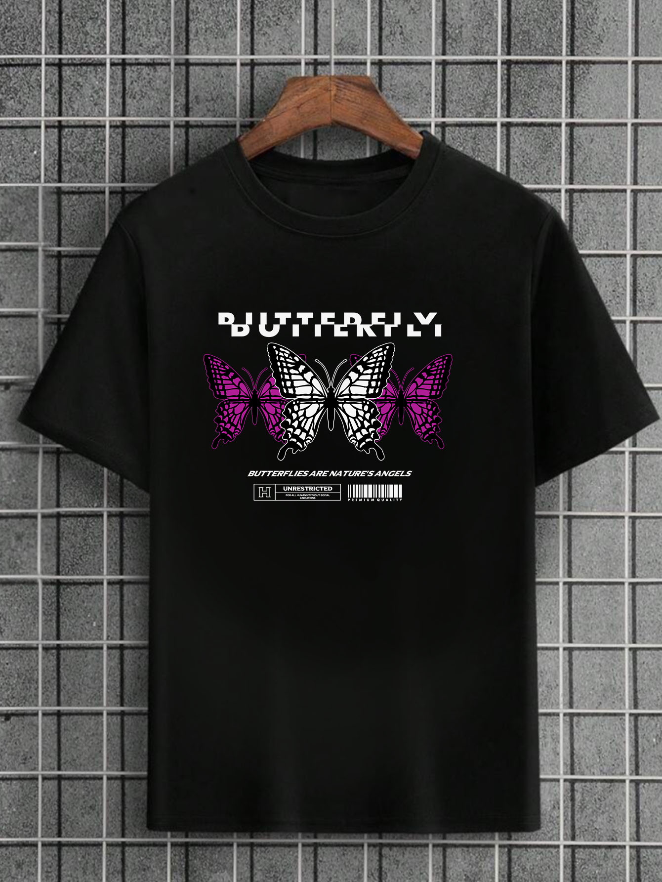 Camiseta Masculina Preta 100% Algodão Butterflies NatureAngels Pink