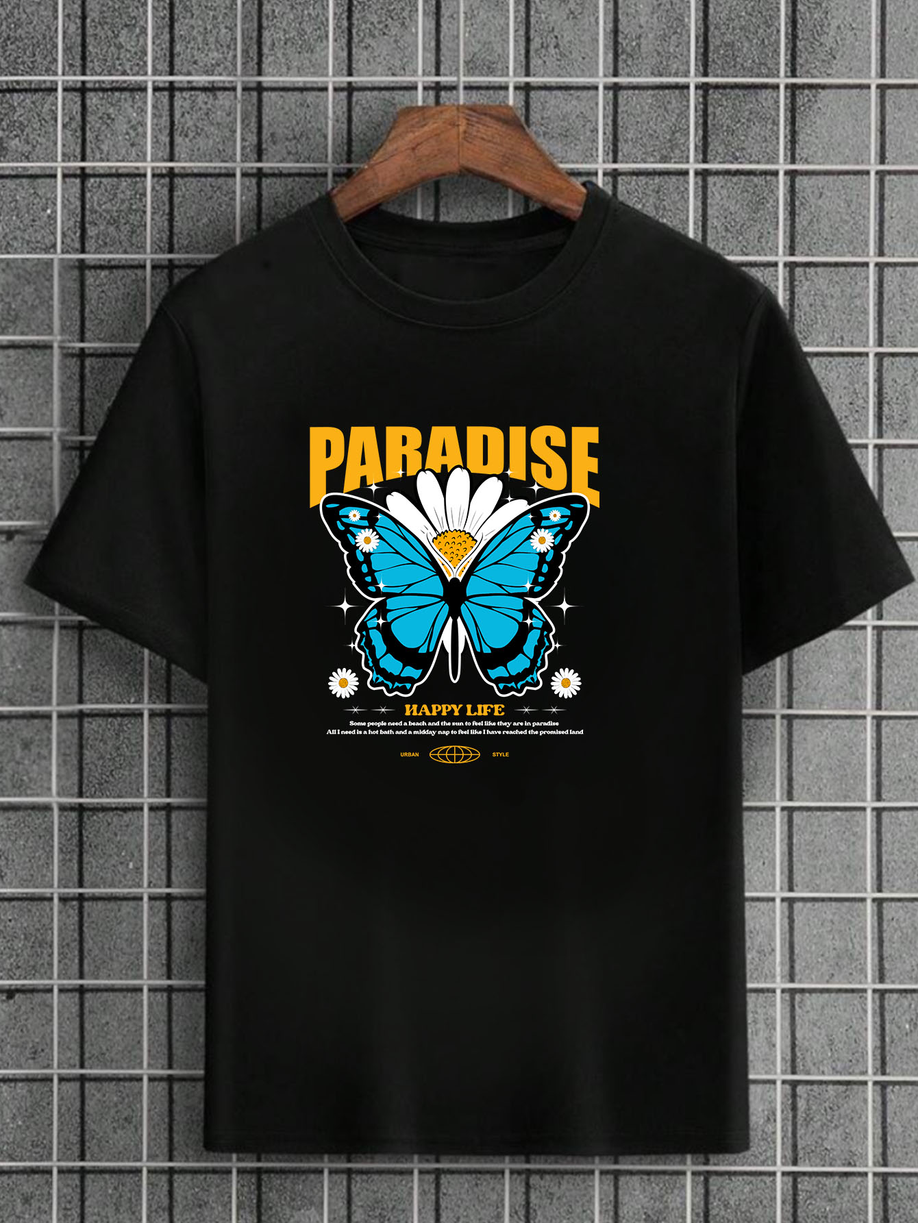Camiseta Masculina Preta 100% Algodão Butterflies Paradise