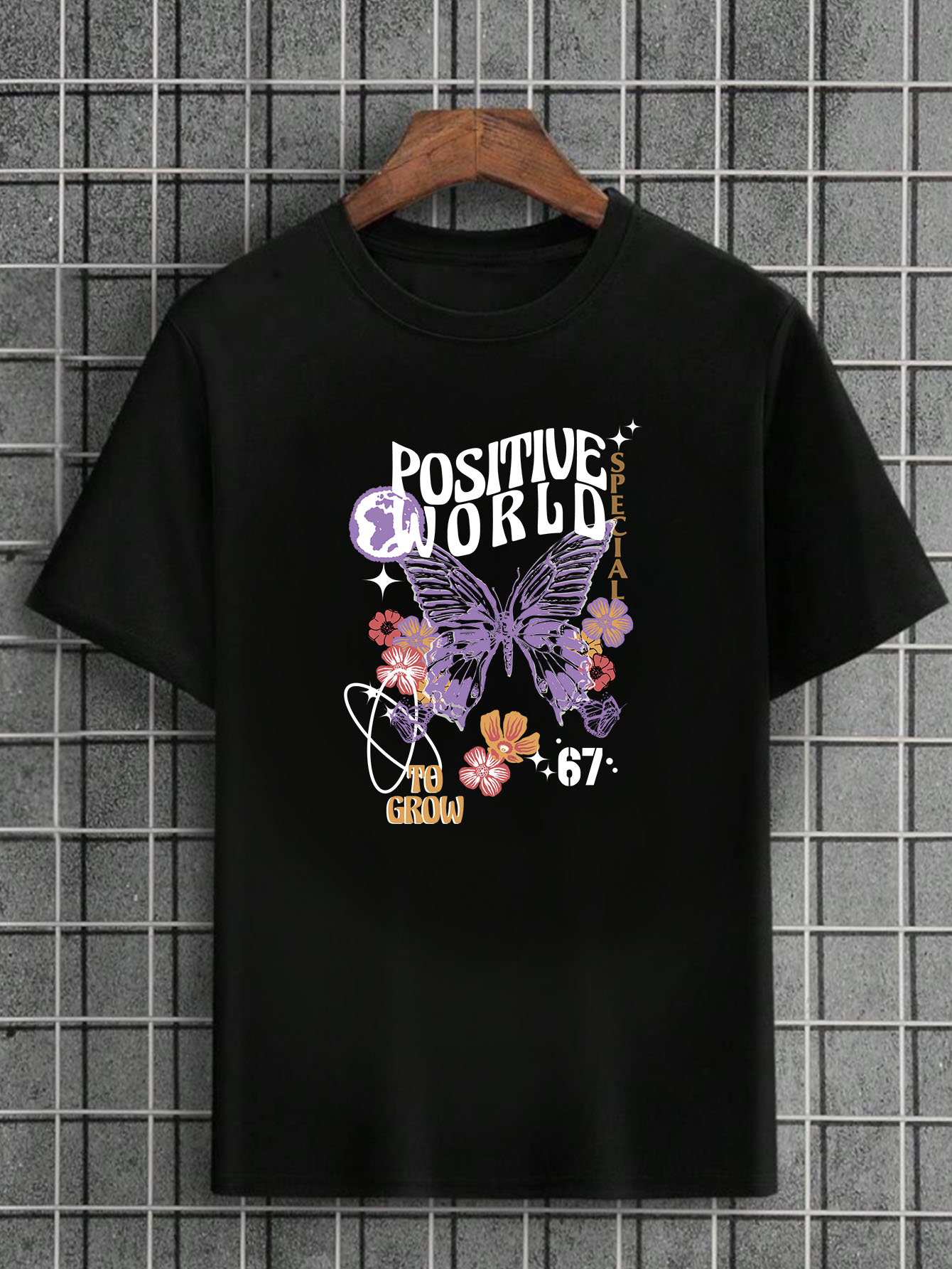 Camiseta Masculina Preta 100% Algodão Butterflies Positive World