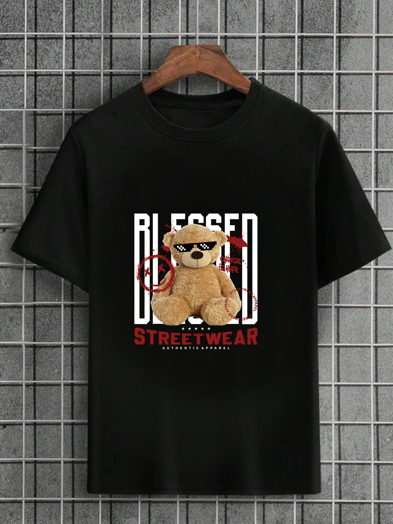 Camiseta Masculina Preta 100% Algodão Urso Blessed StreetWear