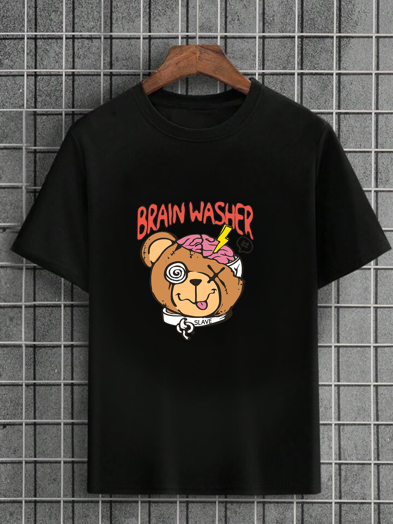 Camiseta Masculina Preta 100% Algodão Urso Brain Washer