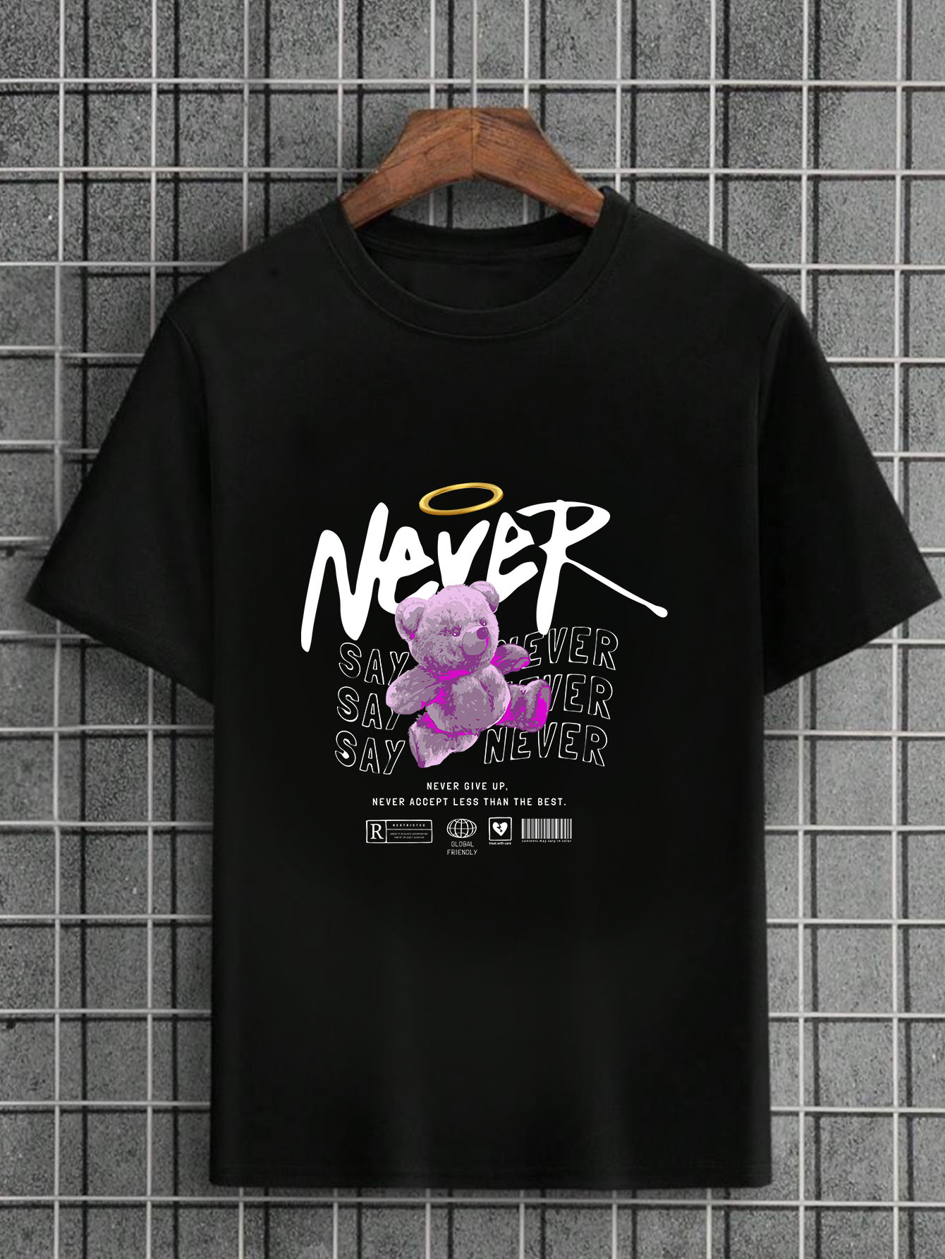 Camiseta Masculina Preta 100% Algodão Urso Never