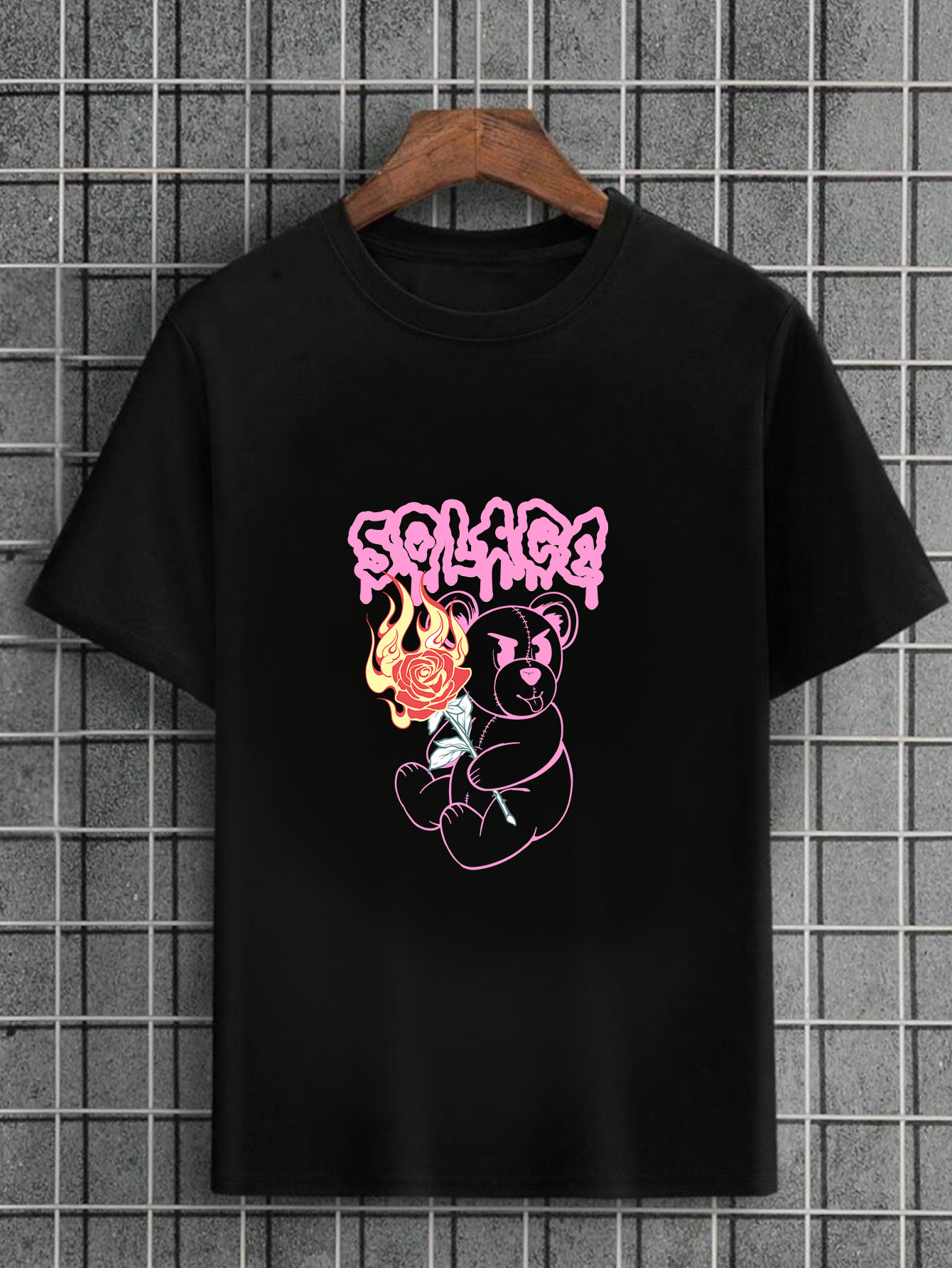 Camiseta Masculina Preta 100% Algodão Urso Solage