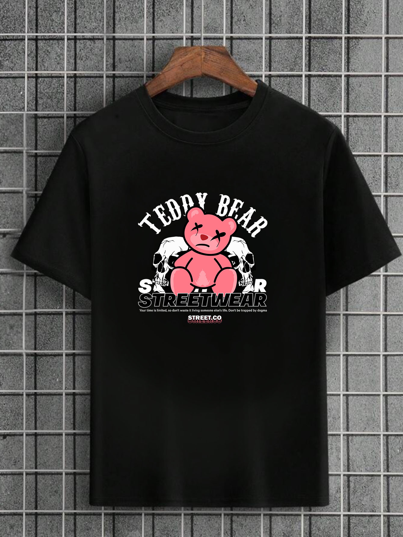 Camiseta Masculina Preta 100% Algodão Urso StreetWear