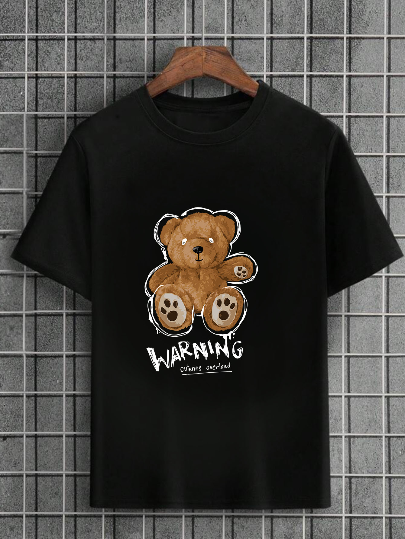 Camiseta Masculina Preta 100% Algodão Urso Warning