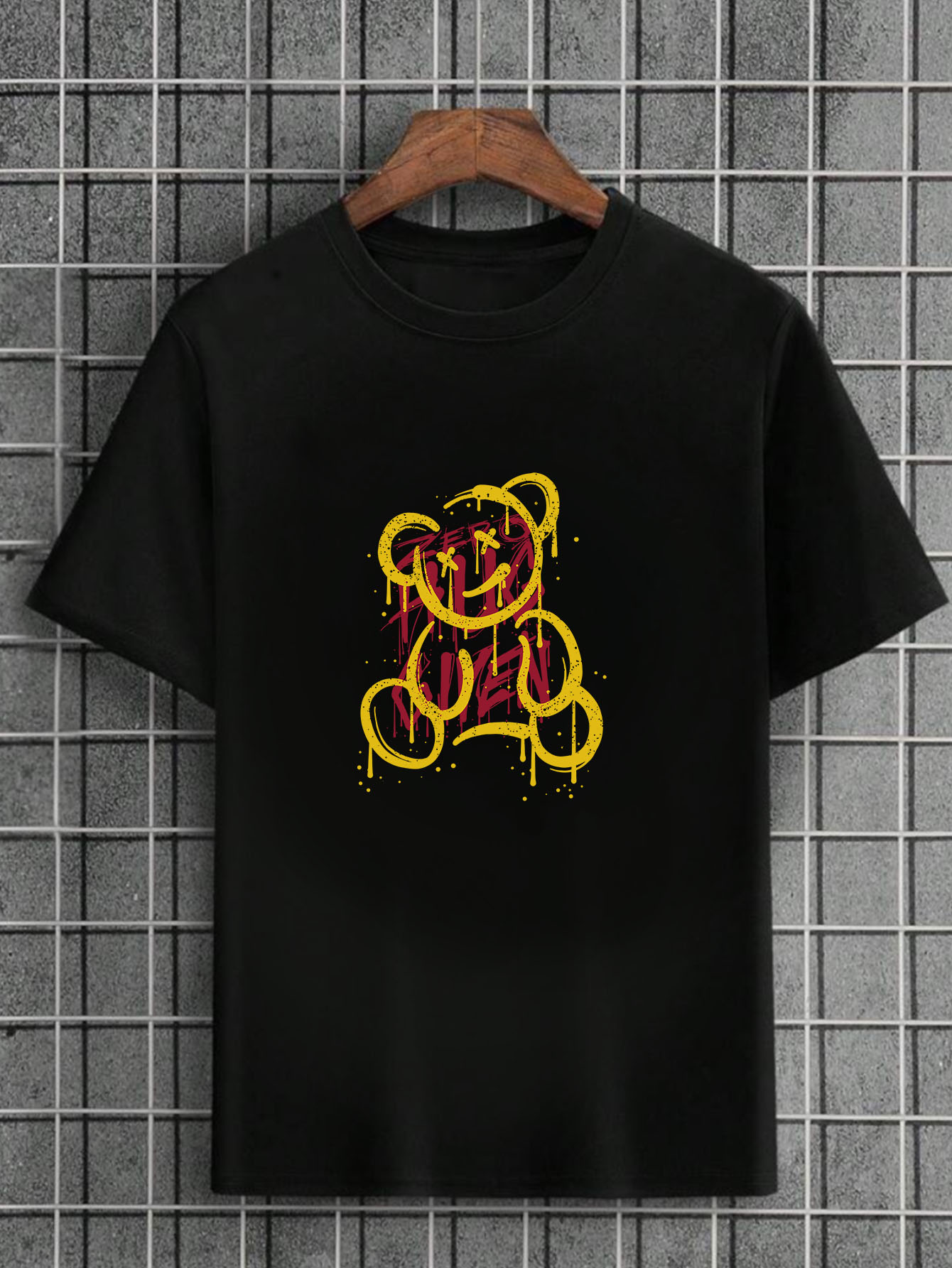 Camiseta Masculina Preta 100% Algodão Urso Yellow