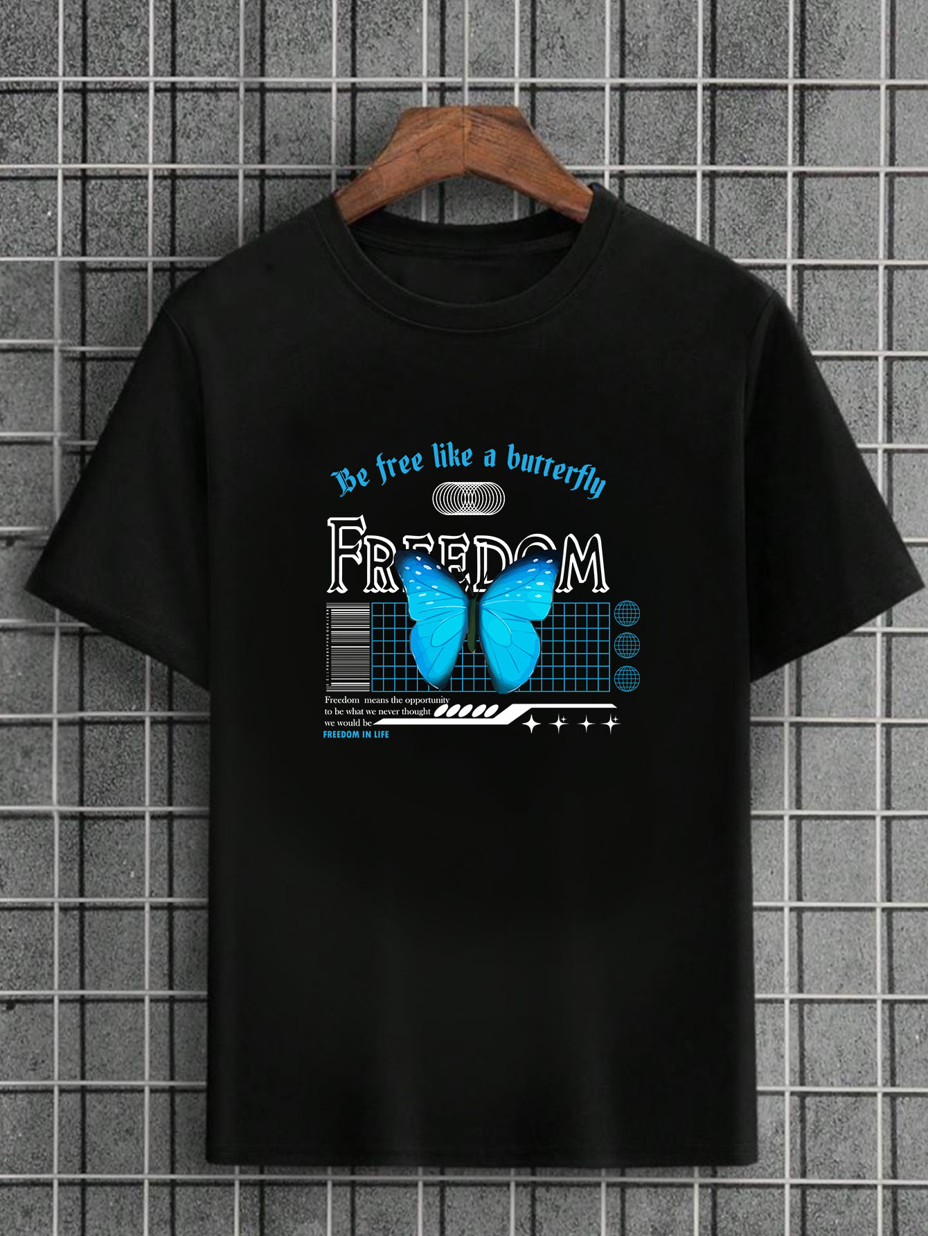 Camiseta Masculina Preta 100% Algodão Butterflies Freedom